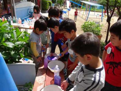 5歳児のゆり組は,先日から石鹸であわあわ遊びを楽しんでいます。