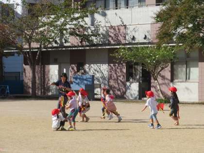運動会は終わりましたが・・・子どもたちは「動くこと」が大好き!自分の学年だけでなく、一つ上の学年のしていたことを『やってみたい!』と挑戦する姿、そして年長組さんは『こうしてするねん』と教えてあげる姿などが見られます。