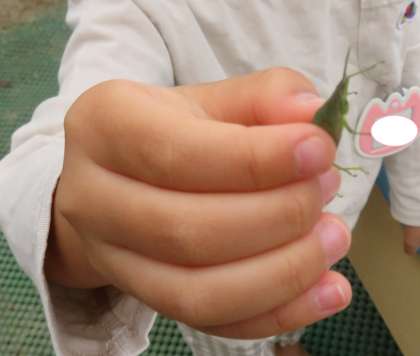 そして・・・畑から跳んできたバッタも捕まえて、大満足でした。