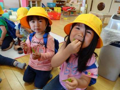 今回は子どもたちが直に収穫していませんが,今度5歳児のゆり組が収穫してきたら気持ちの深まりがうんと違うのだろうなと楽しみにしています。