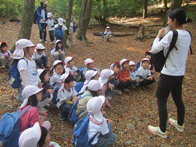 やはり日頃の遊びの中で培われた体力・根気・好奇心は本物でした。5歳児たちは軽々と山を登り、下りは少し『慎重気味に…』な姿もみられました。