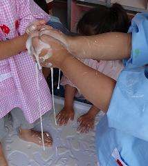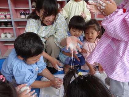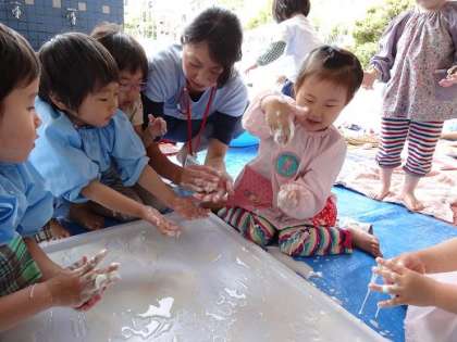 子どもたちはそのおもしろさと感触の気持ち良さに夢中になっているようでした。