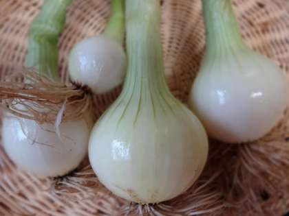 育ちきっていないので,少々小さめですが,きれいでおいしそうなタマネギです。