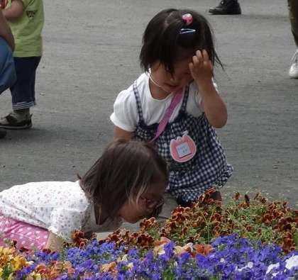 と花に顔を近づけていました。