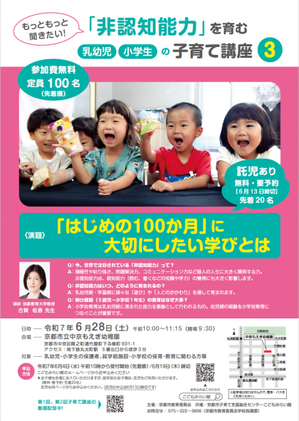 「『非認知能力』を育む乳幼児小学生の子育て講座3」のご案内です。