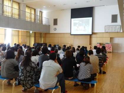 これまでの写真をつかって,子どもの遊んでいる様子や生活している様子をお伝えしたり,その姿を通して,今育とうとしていることや幼稚園が大切に育てたいと願っていることをお話しました。