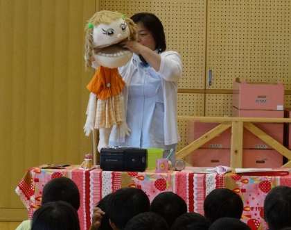 4歳児と5歳児の親子に向けて,歯磨き指導を実施しました。