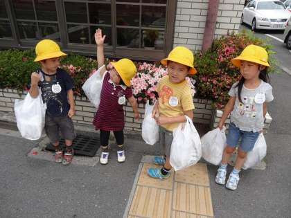 パン屋さんまでのお買物,4人の当番の子どもたちと一緒に出かけました。