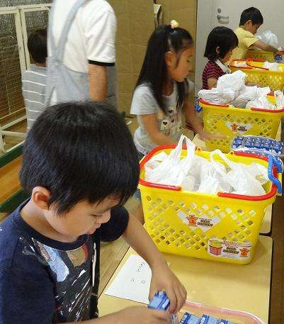 パンと牛乳を分けるときには,4枚のカードを渡して,4人の子どもで相談してどのカードを分担するか決めてもらっています。