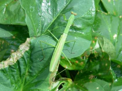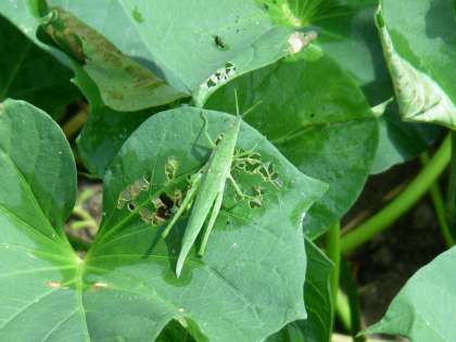 今日農園に行ってみると,いましたいました。サツマイモの葉っぱの陰から次々と飛び出してきました。西賀茂農園の住人たちです。
