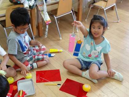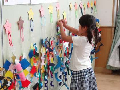 5歳児のゆり組が保育室で七夕製作をしていました。