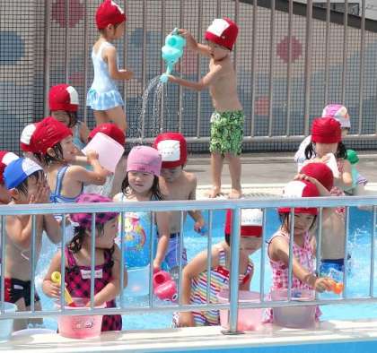 楽しく遊びながら,水に親しみ,水の性質を感じ,安全に過ごす意識をもってほしいと願っています。