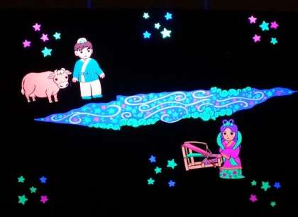 真っ暗の中,絵がピカピカ光って,本当の夜空のお星様を見ているようです。