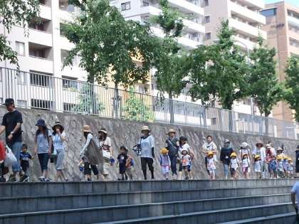 3歳児のもも組とたんぽぽ組は,親子で堀川まで出かけました。