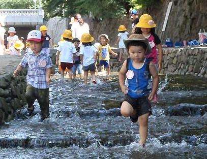 「おやつにするから川からあがってね」