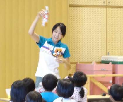 お話の中で,いろいろな色水の混色の不思議さを楽しんだ時間でした。