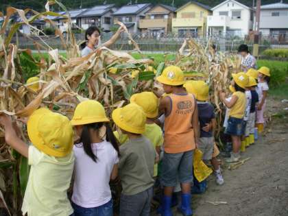 9日(水),ゆり組の子どもたちが西賀茂農園に出かけ,ポップコーンの収穫をしました。本当は,新町小学校の1年生のお兄さんお姉さんと「一緒に収穫をしよう」ということになっていたのですが,残念ながら別々に行くことになりました。