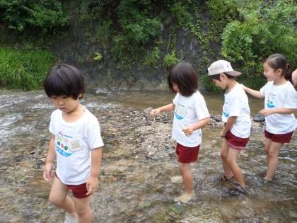しばらくして,ようやく雨が止みました。せっかく,来たのだからと,川に足をつけて,ゆっくり歩いてみました。少しの時間だったけど,ひんやりとした水の感触を味わいました。