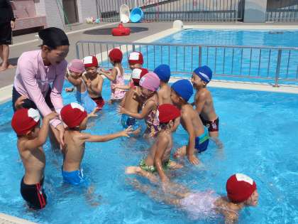 プール遊びは,7日が最終になります。安全にプール遊びを楽しむためのルールが,3歳児なりに理解して,守っている姿も見られ,ほほえましい姿もいっぱいありました。