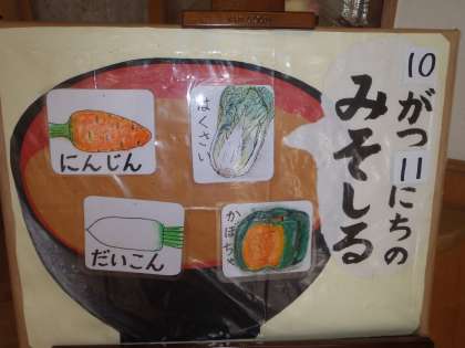さて,さて,野菜たっぷりのお味噌汁です。今日のパンは,メロンパンとウインナーパン。みんなで,美味しくいただきました。