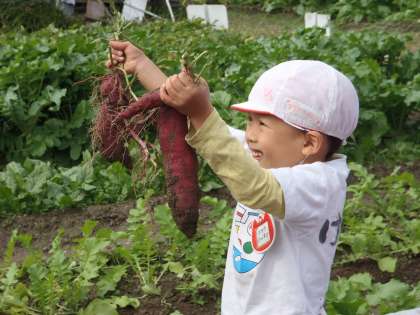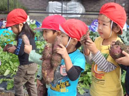 子どもたちの歓声が,聞こえてきます。つながって出てくるお芋,まん丸な大きなお芋,土がいっぱいついた長いお芋・・・・・。出てくる,出てくる。もう,感激です。