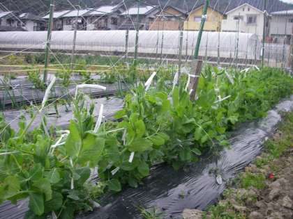 園庭のえんどう豆も大きくなってきましたが,西賀茂農園のえんどう豆もすくすくと大きくなってきています。