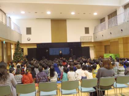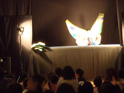 はじめに,ショートストーリーで「かにのお話」「ねずみとねこのお話」などがありました。最後は,子どもたちの大好きな「はらぺこあおむし」です。お話の世界に引き込まれていく子どもたち。最後に,大きな蝶が誕生するシーンは心が揺れ動いた様子でした。