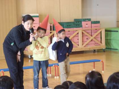 今日の誕生会は,ゆり組の子どもたちが,楽器を演奏してくれました。「きらきらぼし」はメロディベルで,いろいろな楽器をつかって「サンタの曲」も聞かせてくれました。