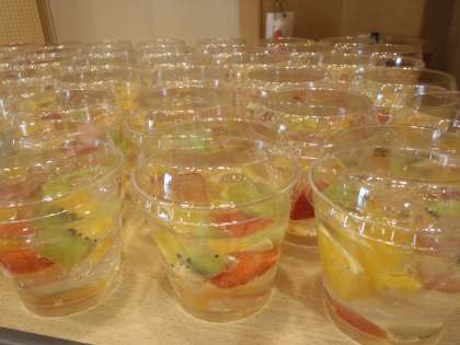 後半のお楽しみは,お弁当をみんなで食べたあと,フルーツがいっぱいのっているゼリーを食べました。色がきれいでピカピカ光っているゼリーでした。美味しかったです。