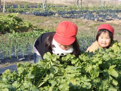大きく育った大根は,子どもがぬこうとしてもなかなかどうして動いてくれません。
