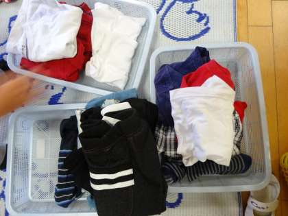 脱いだ服もきれいに畳んでかごの中にいれています。