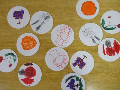 自分たちがいろいろな絵をかいたカードで遊んでいる子どもたちもいます。