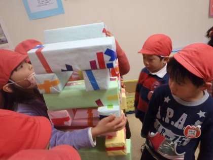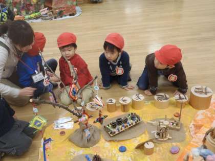 遊べるコーナーでは,他園の子どもたちがつくった作品で遊べます。