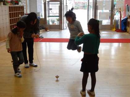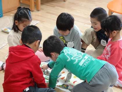 5歳児のゆり組は友達と一緒にお正月遊びを楽しんでいます。