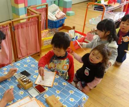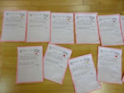 4歳児と3歳児のカードは,マラソンが終わった後に,保育室に帰ってから今日の日付のところにハンコを押すようにしてあります。