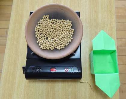 ほうらくで豆まきに撒く豆を炒っているのです。