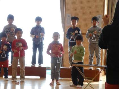 ずっと前からいろいろな楽器をならして楽しんできたゆり組ですが,今はみんなで合わせる気持ち良さや音色の美しさを感じて合奏するようになりました。
