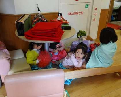 おひなさまの横で,自分たちもおままごとのお道具をもってきておひめさまごっこです。