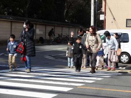 「横断歩道を渡るときは,右左右して,手をあげて・・・」