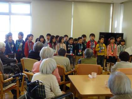 歌を聴いてもらったり,ふれあい遊びをしたりして,おじいさんやおばあさんと一緒の時を過ごしました。