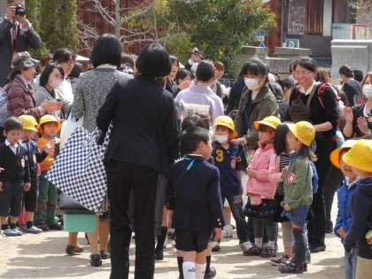 たくさんのお客様もきてくださり,全園児も参列しての式です。