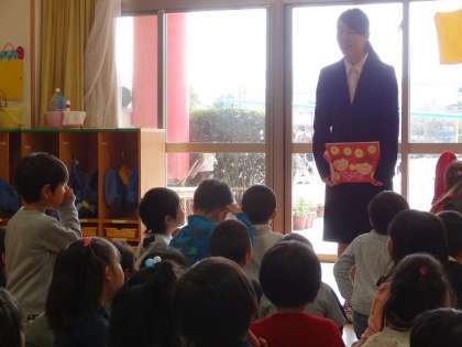 お昼ご飯の頃には,職員室にゆり組の担任の先生をたずねてきて
