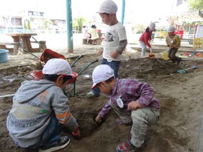 また、友達同士で小さなスコップで穴を掘り進めています。