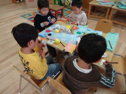 目玉ができたら、尻尾や体の模様(うろこ)です。