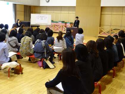ちいさなお子さんをお連れのかたも、遊戯室の端のほうで子どもさんの様子を見ながら出席されていました。幼稚園ならではの風景だなと思いました。