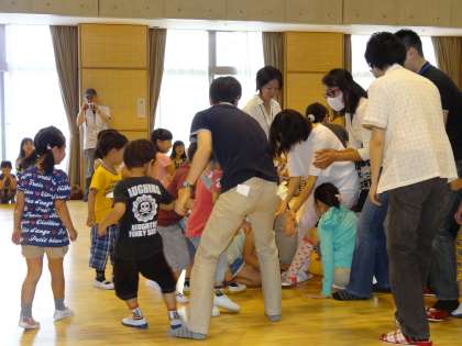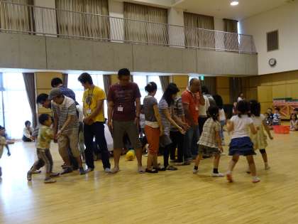 はじめは少し遠慮がちにボールを守っていたお家の人も、子どもたちの熱気に巻き込まれ、子どもも大人も、お兄さんお姉さんも必死にボールを追い求め、楽しいゲームになりました。