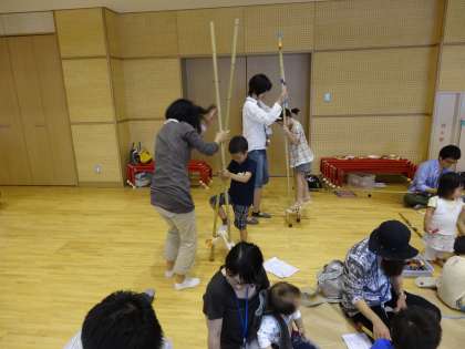 5歳児は親子で竹馬作りもしました。