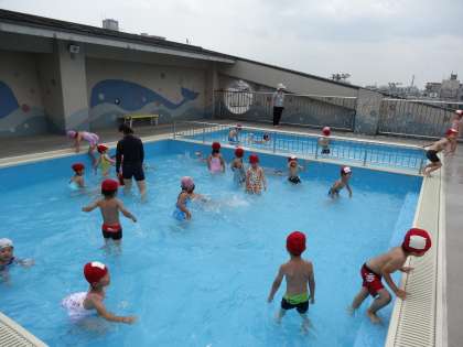 小プールと大プールを行ったりきたりしながらのびのびと遊びました。