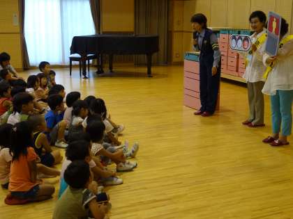交通安全の紙芝居や、信号機の話をしてくださいました。