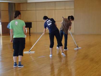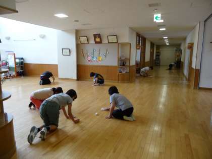 朝からの清掃とワックスがけで、幼稚園はピカピカです。